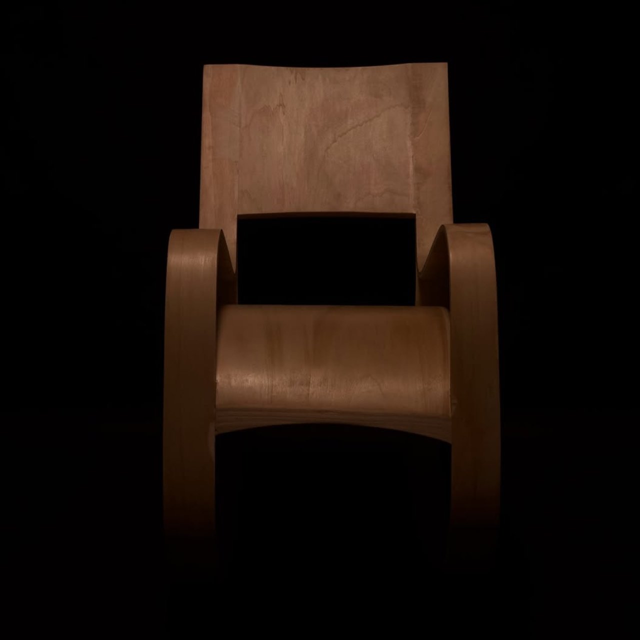 The chair’s form is distinguished by its continuous curves and absence of unnecessary joints or supports. This is achieved through precise cutting and bending of plywood, demonstrating both material efficiency and structural integrity. The minimalistic design not only enhances aesthetics but also reduces waste, aligning with sustainable design practices. Its lightweight yet sturdy build makes it suitable for a variety of modern living spaces, from living rooms to creative studios.