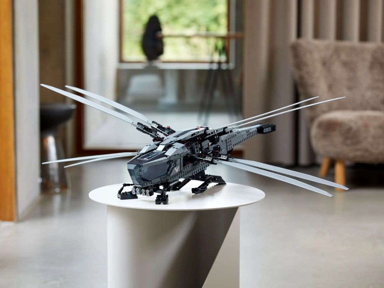 The LEGO® Icons Dune Atreides Royal Ornithopter is an epic building set, a detailed replica of the House Atreides aircraft as seen in the first movie Dune: Part One. Here you can see it in its magnificent brick form and this meticulously crafted 1,369-piece set is designed for adult builders as it’s one of their more complicated builds. The premium-quality replica includes fold-out, flappable wings, deployable landing gear, and an opening cockpit.