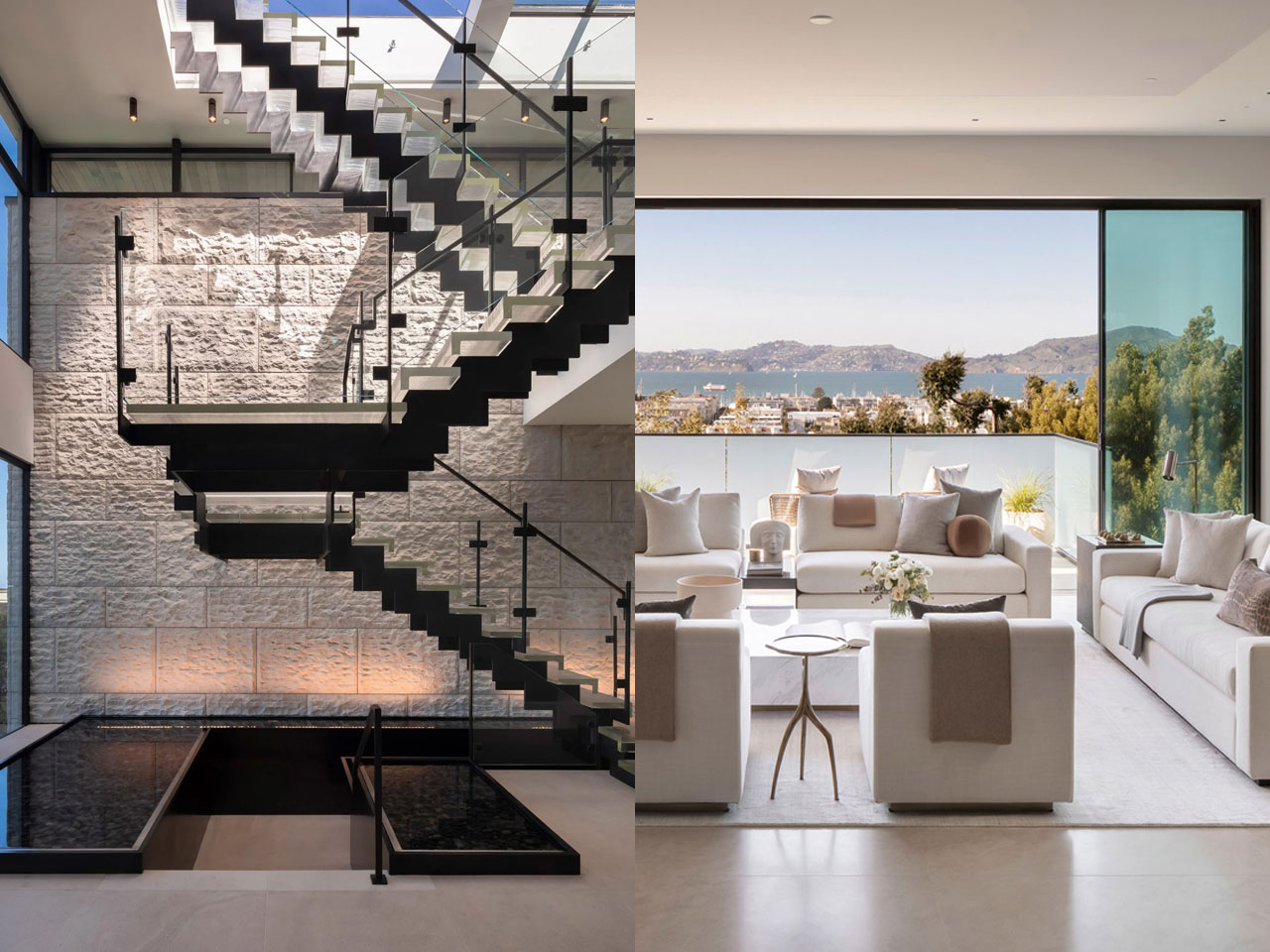 Geddes Ulinskas Architects deliver a masterclass in luxury minimalism with this 12,000 sq. ft. Cow Hollow residence in San Francisco. Defined by clean geometry and natural materials, the home centers around a cast glass staircase that is sculptural and serene, forged from molten glass over three months.